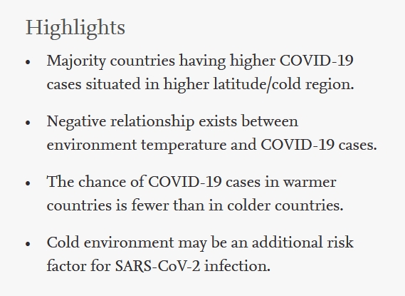 This pilot study proposes that cold environment may be an additional risk factor for COVID-19 cases.