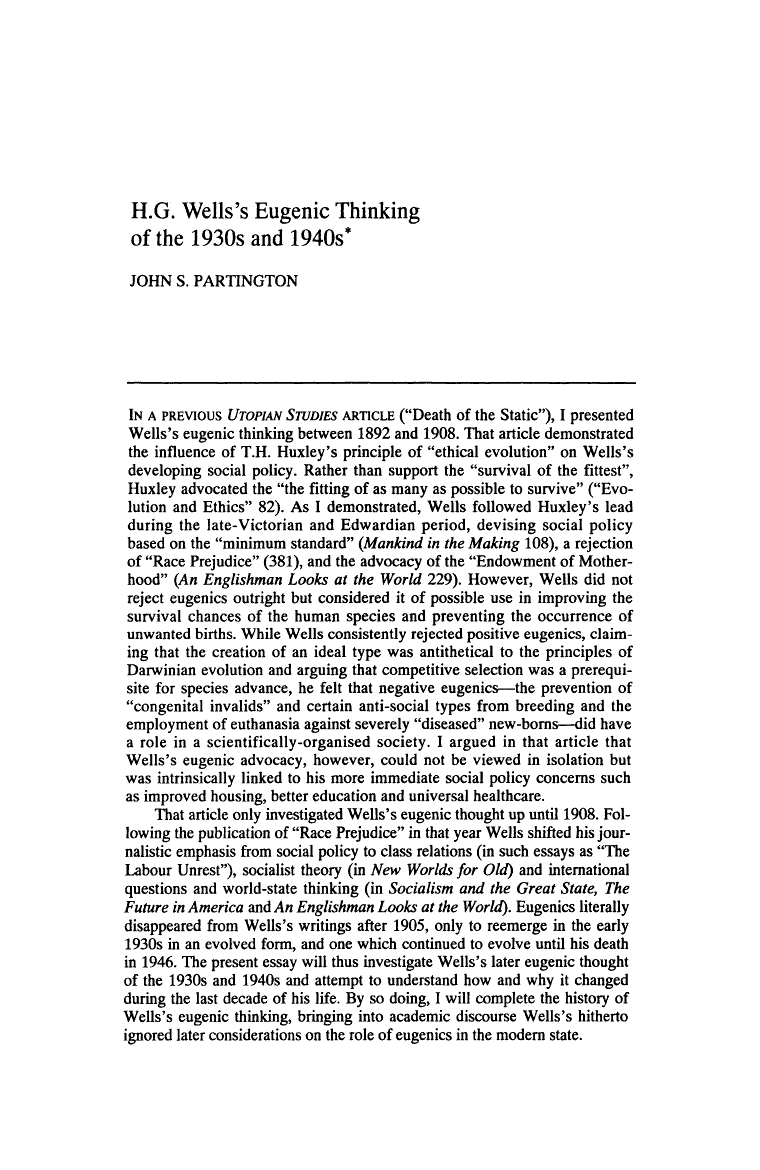 an critic or supporter of Eugenics? book [pictured left] mentions Huxley Sr as influence on HG Wells.