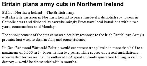 - The IRA ceases all armed activity
