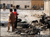 9.40PM, Wed Jul 13 2005 - Around 27 people, many of them Iraqi children, have died after a suicide car bomber drove up to a US vehicle and detonated his car. According to US and Iraqi officials, one US soldier has died, and three others are said to have been injured in the attack. The suicide car bomb exploded near a patrol where US forces were handing out sweets to children. The British government has condemned the attack, and offered condolences to the families and parents of the children killed. Foreign Secretary Jack Straw, said: "This was a sickening act; the depravity and shocking inhumanity of such terrorism which results in the death of young, defenseless children knows no bounds. I utterly condemn this barbarous attack.
