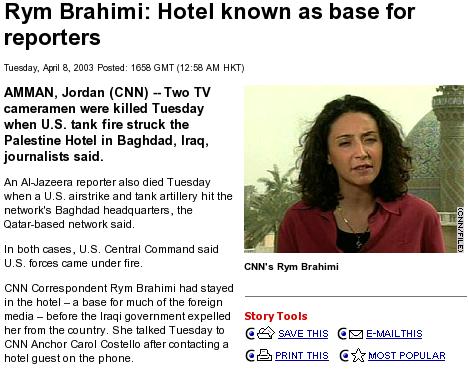BRAHIMI: I can't comment on that. I don't know, I can't say whether or not that is accurate. I know that the Palestine Hotel, from the beginning of the war, was the hotel where all the journalists were staying. There were very few journalists -- in fact, I don't know of any journalists who at the eve of the war, when the war began, were still anywhere else but at the Palestine Hotel.