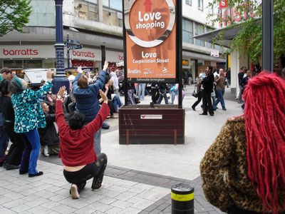 07.06.2005 - An action took place in Birmingham City Centre to draw attention to the issues of consumerism. The action coincided with the CIRCA workshops that took place over the same weekend.